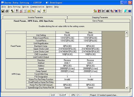 如果有必要,還可以根據(jù)需要進(jìn)行共享參數(shù)設(shè)置,比如系統(tǒng)中有觸摸屏時(shí),就可以在觸摸屏上設(shè)定指定軸的速度,通過共享參數(shù)刷新到運(yùn)動(dòng)控制器中去,再通過在運(yùn)動(dòng)控制器的CHGV中使用被刷新的新速度值存儲(chǔ)軟元件就可以改變指定軸的轉(zhuǎn)速了,如果系統(tǒng)中有AD模塊,也可以用外部模擬量來控制指定軸的轉(zhuǎn)速。
