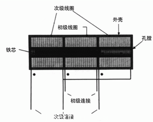 基本LVDT(見圖1)由3個中孔的軸向?qū)R的固定線圈組成,一個鐵芯可在孔膛內(nèi)自由移動。在鐵芯和孔膛之間有足夠的間隙,防止相互接觸。中心線圈是變壓器初級,由50Hz~10K Hz恒定頻率交流波形驅(qū)動。兩側(cè)次級線圈是反向串聯(lián)繞制的,因而它們的電壓是互相抵消的。