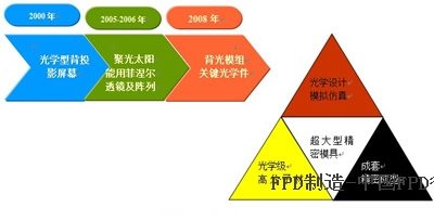 整個TFT-LCD生產(chǎn)制程中,LCD背光模組技術(shù)壁壘較高,背光模組中幾大關(guān)鍵部件---導(dǎo)光板、擴散膜、棱鏡片(增光膜)等這些功能光學(xué)件的關(guān)鍵技術(shù)基本掌握在美、日、韓、中國臺灣等少數(shù)企業(yè)手中。