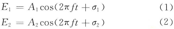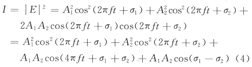 式中:A1和A2分別為光波的振幅;σ1和σ2分別是光波的位相;當(dāng)E1和E2滿足相干條件時(shí),其光波的合成復(fù)振幅E為: