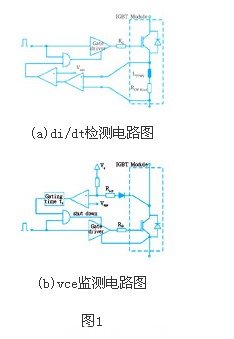 di/dt檢測中圖1(a),驅(qū)動器通過電子線路去測量igbt中電流的變化率。輔助和功率發(fā)射極間的雜散電感上的壓降正比于集電極電流的變化率(di/dt)。通過將電壓與參考電壓相比較,可以檢測出快速的短路。為了監(jiān)測緩慢短路,該方法在鍵合線及功率和輔助發(fā)射極間的內(nèi)部母線中使用阻性元件。然而,此方法還取決于用于電源連接的螺絲連接。這些顯示了一定的接觸電阻特性分布,并要考慮與其他電阻元件的串聯(lián)。這要求精確地適應(yīng)給定的系統(tǒng)。一般來說,di/dt檢測只能用于帶有輔助發(fā)射極輸出的igbt模塊。