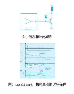 驅(qū)動器電子可以通過有源鉗位直接控制過電壓,也可以使用intellioff(智能關(guān)斷),一種用于減小臨界電壓尖峰的功能。如圖2,3所示。