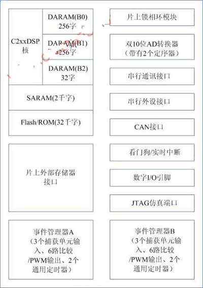 圖1 TMS320Lx240x系列DSP控制器總體結(jié)構(gòu)