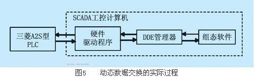 dde管理器作為服務端通過驅動程序從plc的內存中采集到數據,與組態(tài)進行數據交換后又通過驅動程序寫入plc的內存區(qū),這一過程的示意圖如圖5所示。