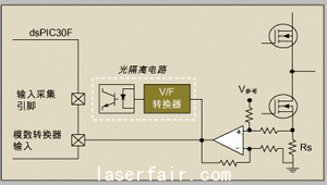 當(dāng)控制器上有“輸入采集”引腳時(shí),我們也可以在設(shè)計(jì)中加上隔離式模擬放大器,通過(guò)數(shù)字轉(zhuǎn)換來(lái)得到相電流。用V/F或者電壓/PWM轉(zhuǎn)換器把模擬信號(hào)轉(zhuǎn)換成數(shù)字信號(hào)。模擬信號(hào)可用數(shù)字式光耦合器通過(guò)隔離電路傳到控制器。與模擬隔離方案相比,V/F轉(zhuǎn)換器+光耦合器方案成本較低。