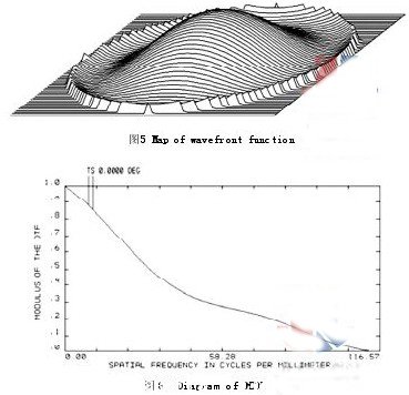 圖 4 給出了系統(tǒng)的波前像差,圖 5 給出了傳遞函數(shù)圖。
