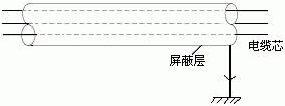 ?、?屏蔽層單端接地是在屏蔽電纜的一端將金屬屏蔽層直接接地,另一端不接地或通過保護接地。如下圖: