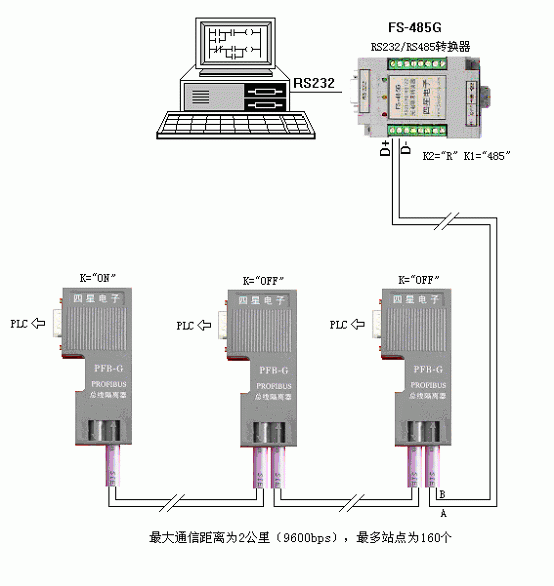 如總線上需掛接變頻器通信,為便于安裝和接線,可將PFB-G換成BH-485G隔離器,將變頻器的RS485口經(jīng)BH-485G隔離后再和總線相連,這種方案可以很好的解決PLC與變頻器通信時的干擾和死機問題!