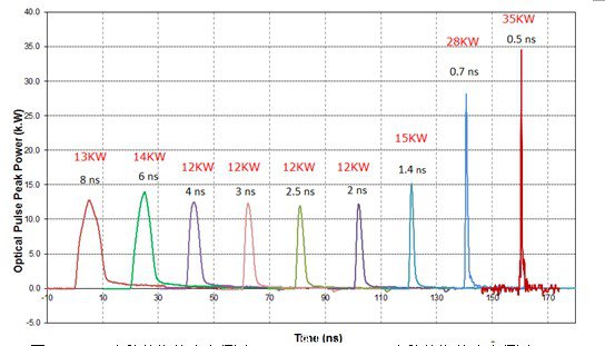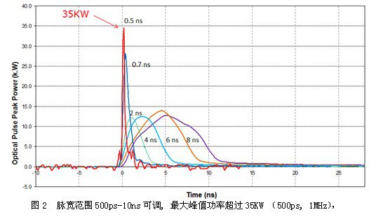 圖2 脈寬范圍500ps-10ns可調(diào), 最大峰值功率超過35KW (500ps, 1MHz)