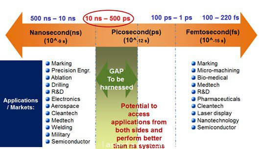 圖4 在激光脈沖寬度家族中,1ns -500ps 脈沖寬度急需開發(fā)。