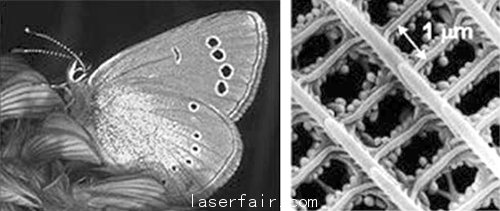 在生物界中,也不乏光子晶體的蹤影。以花間飛舞的蝴蝶為例,其翅膀上的斑斕色彩,其實是鱗粉上排列整齊的次微米結(jié)構(gòu),選擇性反射日光的結(jié)果。數(shù)年前,科學(xué)家發(fā)現(xiàn)澳洲海老鼠的毛發(fā)也具有六角晶格結(jié)構(gòu),為生物界的光子晶體又添一例。