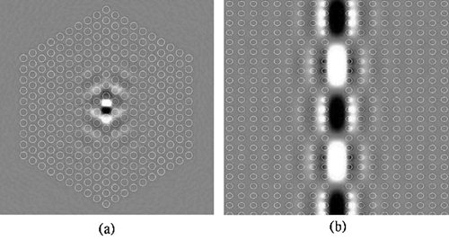 圖10. (a)點缺陷應(yīng)用于共振腔;(b)線缺陷應(yīng)用于波導(dǎo)