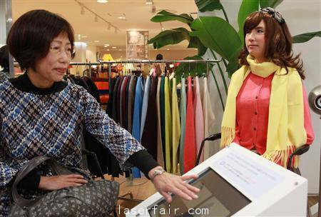日本商場(chǎng)現(xiàn)機(jī)器人銷售員 微笑著為顧客服務(wù)