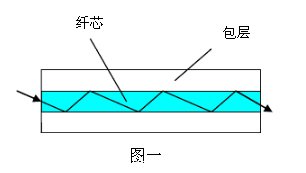 光纖是以SiO2為基質(zhì)材料拉成的玻璃實(shí)體纖維,主要廣泛應(yīng)用于光纖通訊,其導(dǎo)光原理就是光的全反射機(jī)理。普通裸光纖一般由中心高折射率玻璃芯(芯徑一般為9-62.5μm)、中間低折射率硅玻璃包層(芯徑一般為125μm)和最外部的加強(qiáng)樹(shù)脂涂層組成。〈見(jiàn)圖一〉光纖可分為單模光纖和多模光纖。單模光纖:中心玻璃芯較細(xì)(直徑9μm+0.5μm),只能傳一種模式的光,其模間色散很小,具有自選模和限模的功能。多模光纖:中心玻璃芯較粗(50μm+1μm),可傳多種模式的光,但其模間色散較大,傳輸?shù)墓獠患儭?br />