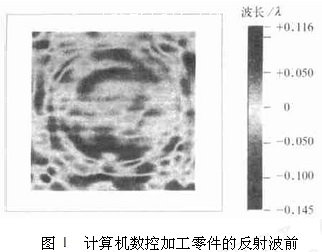 使用小工具數(shù)控拋光加工340 mm ×340 mm ×60 mm的平面反射鏡,初始反射波前誤差為3. 5λ( P -V 值,λ = 0. 632 8μm) ,經(jīng)過僅30 h 的拋光,反射波前誤差P - V 值收斂至0. 26λ ,均方根值為0. 035 λ ,如圖1 所示(圖中標(biāo)尺列出的“+ 、- ”值應(yīng)當(dāng)用不同的色彩表示,黑白照無法區(qū)分,只是一個(gè)示意圖) 。從圖中明顯地看到通常所說的“碎帶”誤差,在強(qiáng)激光系統(tǒng)中,這種高頻誤差必須嚴(yán)格控制。因此這種工藝方法不能作為強(qiáng)激光系統(tǒng)光學(xué)元件的最終加工。