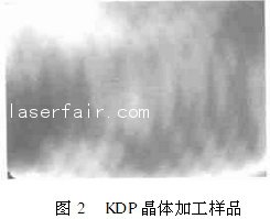 激光核聚變KDP 晶體加工通常采用超精密切削的方法,NIF 裝置中KDP 晶體尺寸是450 mm ×450mm ,透射波前是λ/ 4 。我國現(xiàn)在還沒有能加工出這個(gè)精度的機(jī)床,而且KDP 晶體不能像其他光學(xué)元件那樣采用手工修研的辦法來加工,所以必須研制自己的KDP 晶體超精密加工機(jī)床。圖2 是240 mm ×240 mmKDP 晶體的加工樣品,從圖中可以看出明顯的加工痕跡,這種刀痕給晶體的透射波前添加了小尺寸的周期性擾動(dòng),是必須抑制的制造誤差。筆者經(jīng)過研究認(rèn)為主要是由工作臺(tái)和進(jìn)給絲桿之間的傳遞誤差引起的。研制新機(jī)床時(shí),一定要研制新的進(jìn)給驅(qū)動(dòng)系統(tǒng),以減少KDP 晶體的波紋度。