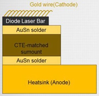 中國(guó),西安,2014年6月19日 - 2014年6月,西安炬光科技有限公司宣布推出全金錫焊料封裝傳導(dǎo)冷卻半導(dǎo)體激光器單Bar HCS02系列新品。該系列新品的封裝技術(shù)不僅在submount與bar條之間采用金錫焊料,且在submount與heatsink之間也采用金錫焊料,真正實(shí)現(xiàn)了半導(dǎo)體激光器的全金錫焊料封裝,產(chǎn)品結(jié)構(gòu)如圖1所示。該系列新品目前包括幾個(gè)類別的產(chǎn)品,分別為FL-HCS02-50(W)-808(nm),F(xiàn)L-HCS02-50(W)-825(nm),F(xiàn)L-HCS02-250(W)-808(nm)(QCW)和FL-HCS02-60(W)-9xx(nm)。