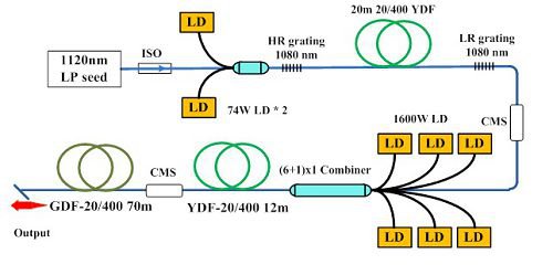 千瓦級摻鐿-拉曼集成的光纖放大器結(jié)構(gòu)示意圖