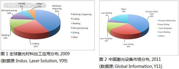 以中國市場而言,激光設(shè)備的市場在2011年略微超過全球市場的成長率。從宏觀經(jīng)濟的影響來看,雖然中國針對機械產(chǎn)業(yè)、重工業(yè)的激光加工市場縮小了,但小型、中型激光加工市場則在成長。由于中國在全球制造業(yè)上扮演中心的角色,其對激光機械的需求也相當(dāng)巨大,尤其是汽車、半導(dǎo)體、電子產(chǎn)業(yè)具有很大的潛在性需求。中國的加工產(chǎn)業(yè),精密金屬零件加工及激光開孔加工占了加工服務(wù)整體的60%。
