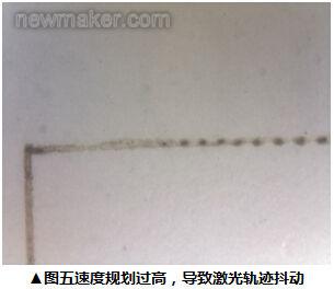 又因為激光控制大多以PWM的方式控制,PWM控制是以改變占空比的方式進(jìn)行,所以對于固定速度會有較好的表現(xiàn),但是如果速度提高,激光的頻率會有來不及出光問題,則反應(yīng)于切割時會產(chǎn)生燒融均勻度不佳的情況發(fā)生,如圖二所示。