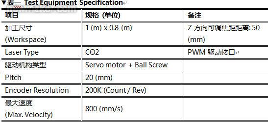 通過以上幾點新功能與新技術(shù)的研發(fā),證明凌華科技新一代的運動控制卡在激光切割效果上有很好的表現(xiàn),其速度規(guī)劃都讓機構(gòu)有最佳的跟隨性,使得整體加工誤差被控制在極小范圍內(nèi)。 表一為實際測試設(shè)備規(guī)格如下,機構(gòu)部分采用伺服馬達(dá)(Servo Motor)及滾珠導(dǎo)螺桿(Ball Screw),最大運動速度為800 (mm/s)。經(jīng)過凌華科技Easy-Tuning軟件調(diào)試后,取得優(yōu)化閉回路PID參數(shù),使得整體機臺的控制表現(xiàn)在±2誤差單位 (在此物理量為5um)。
