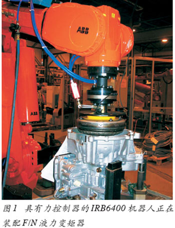 這項(xiàng)技術(shù)最初是在IRB4400 和IRB6400機(jī)器人上進(jìn)行試驗(yàn)的,其有效負(fù)載范圍為30~200kg,用于裝配汽車動(dòng)力總成的不同零件。這些工作是比較復(fù)雜的,其中包括向前插入離合器的盤殼和F/N液力變矩器的裝配(見圖1)。所有試驗(yàn)都一致證明了這兩款機(jī)器人在循環(huán)時(shí)間、可接受的插入力、可靠性和便于編程等方面具有優(yōu)異的性能。