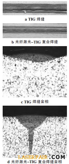 圖4 TIG 焊與光纖激光-TIG 復(fù)合焊對比