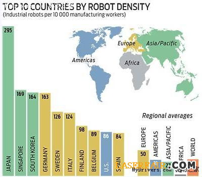 ?。?工業(yè)機(jī)器人密度前十國(guó)家)
