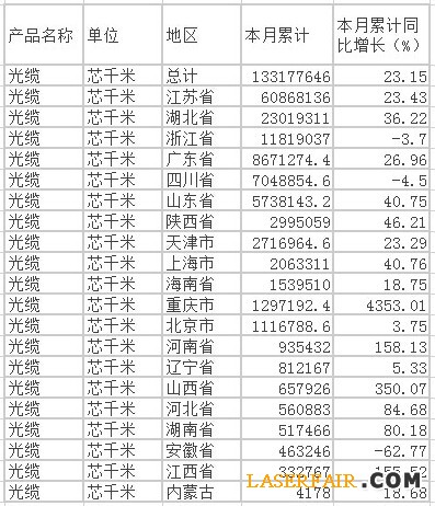 根據(jù)中商產(chǎn)業(yè)研究院數(shù)據(jù)顯示:2015年1-5月我國累計(jì)生產(chǎn)光纜1.33億芯公里,同比增長23.15%?! ∑渲薪K省累計(jì)生產(chǎn)光纜量達(dá)
