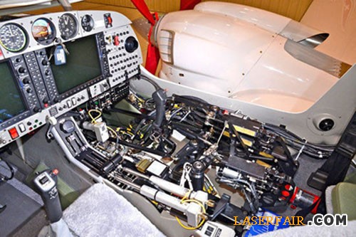 副駕駛的座椅已經(jīng)被一個類似蜘蛛的、由桿子與電線組成的陣列所取代,這個陣列又與飛機右側的轉向桿和腳踏板固定在一起。