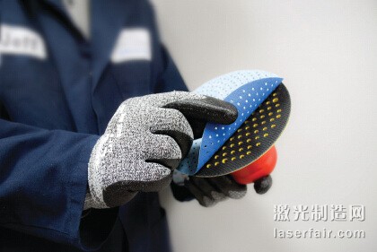 1:激光切割的多孔砂碟連接到一個背襯墊上,用于氣動打磨機。(圖片來自Norton|Saint-Gobain)