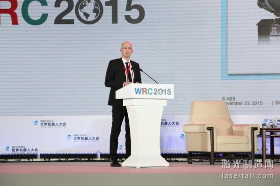 ABB機(jī)器人事業(yè)部產(chǎn)品架構(gòu)總監(jiān)DanielW?ppling,報(bào)告主題為:工業(yè)機(jī)器人:過去、現(xiàn)在與將來,挑戰(zhàn)與機(jī)遇。