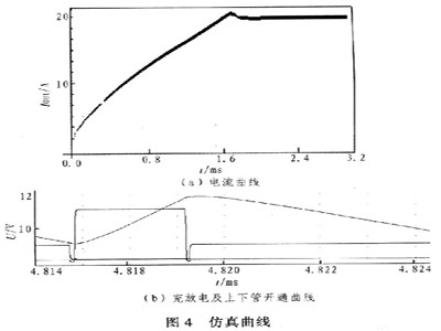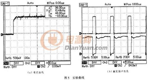 由電流紋波公式可知,增大電感、減小ton都可以減小紋波。為了不提高電感容量,實(shí)驗(yàn)中采用200kHz的工作頻率,其中電感選用4.8-μH,根據(jù)公式可得激光管壓降2V時(shí)紋波電流約為1000mA。