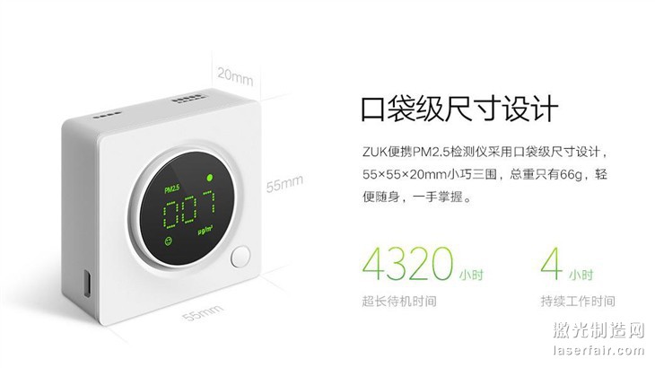 ZUK正式發(fā)布便攜PM2.5檢測儀,并以299元的價格登陸ZUK官方商城。該PM2.5檢測儀采用醫(yī)療級專業(yè)激光顆粒物傳感器,開機3秒即可顯示監(jiān)測數(shù)據(jù),數(shù)據(jù)精準度高達1微克。
