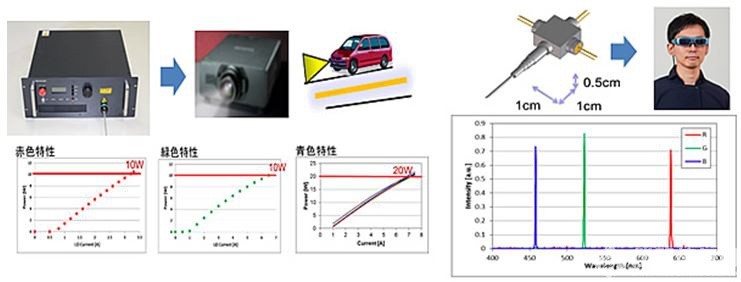 在NEDO項目中,大阪大學和島津制作所以擴大可見光半導體激光用途為目的實施合作研發(fā),開發(fā)出領先世界的高輝度型與超小型3原色激光光源,并對這兩種激光光源模塊做裝機實驗進行了性能評價。