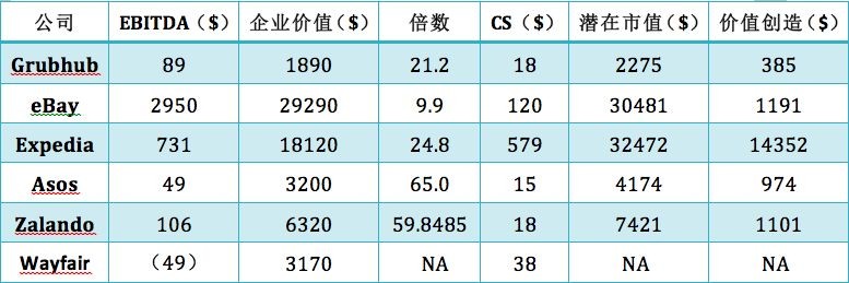 這里有一些你熟悉的公司例子,下面這張表列出了它們目前的企業(yè)價值,在客戶服務(wù)人力資本方面大概的支出情況,以及在這些企業(yè)能夠利用零成本的chatbots替代目前客戶服務(wù)的情況下其企業(yè)價值敏感性。