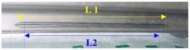 激光熔焊最小直線段焊縫長度為25mm,有效焊縫長度為實現(xiàn)焊縫長度減去兩端頭各2.5mm的超始、收弧處的過渡焊縫長度。