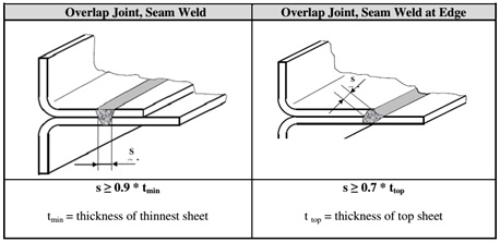 疊焊縫:焊縫寬度S≥0.9T(T為最薄板厚度);