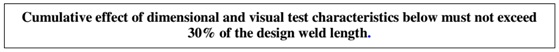 累積缺陷不超過設計焊縫長度的30%。