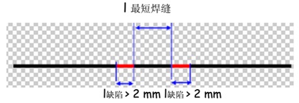 最短焊縫:一條無焊縫缺陷的焊接部分最小長度。(所有焊接缺陷部分應該無一個超過2mm)。