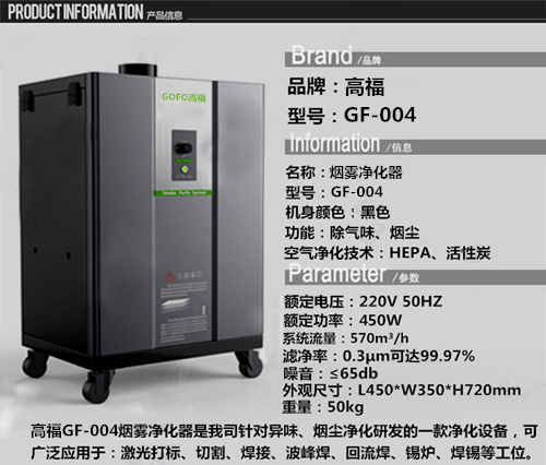 *煙霧過濾一體化結(jié)構(gòu)設(shè)計(jì),安裝簡(jiǎn)便,移動(dòng)靈活,無需鋪設(shè)吸煙管道。