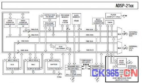 ADI ADSP2100系列是為數(shù)字信號(hào)處理和其他高速數(shù)值處理應(yīng)用而優(yōu)化的微處理器,包括以下幾個(gè)功能單元:計(jì)算單元、數(shù)據(jù)地址發(fā)生器和程序序列發(fā)生器、存儲(chǔ)器、串口、定時(shí)器、主機(jī)接口、DMA以及模擬接口等。