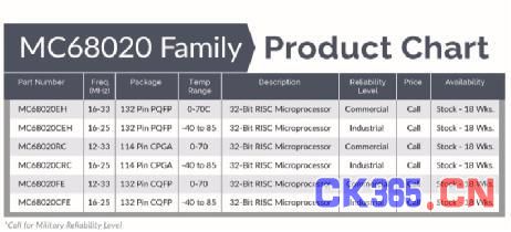圖示3-大聯(lián)大電商平臺(tái)推出的羅徹斯特的Motorola的MC68020家族產(chǎn)品線