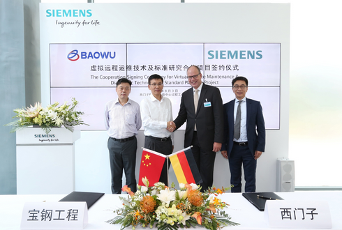西門子與中國寶武鋼鐵集團(tuán)有限公司(寶武集團(tuán))再次深化合作,在今天開幕的西門子2017過程工業(yè)峰會(huì)上,與寶鋼工程技術(shù)集團(tuán)旗下的寶鋼工業(yè)技術(shù)服務(wù)有限公司(寶鋼技術(shù))就其虛擬遠(yuǎn)程運(yùn)維技術(shù)及標(biāo)準(zhǔn)研究簽署合作協(xié)議以及一期項(xiàng)目合同。這是2016年西門子與寶鋼集團(tuán)正式簽署《智慧制造(工業(yè)4.0)戰(zhàn)略協(xié)議》以來,雙方合作的深度推進(jìn)。