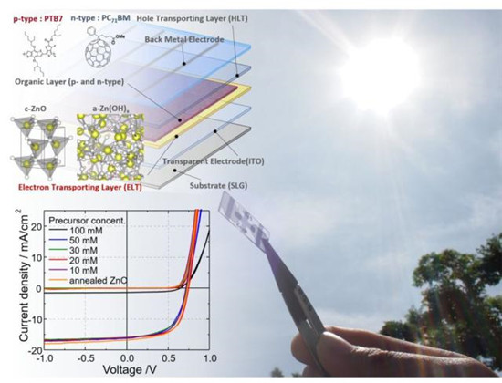 有機(jī)光伏太陽(yáng)能電池以及電池結(jié)構(gòu)的原理圖(圖片來(lái)源:大阪大學(xué))