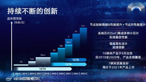 在2019年5月份的投資會議上,英特爾公布新一代制程工藝路線圖,14nm工藝(對標臺積電10nm)會繼續(xù)充實產能,10nm工藝(對標臺積電7nm)消費級產品將在年底開始大規(guī)模出貨,服務器端也計劃在2020年上半年推出。