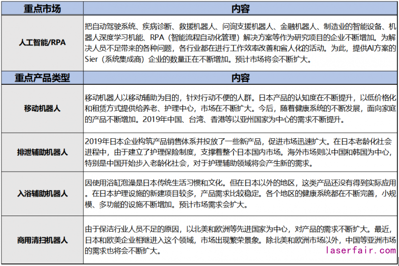 日本新興機(jī)器人產(chǎn)業(yè)的重點(diǎn)市場和產(chǎn)品類型