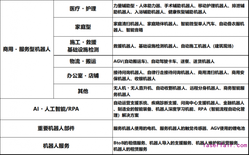 日本新興機(jī)器人的產(chǎn)業(yè)分類