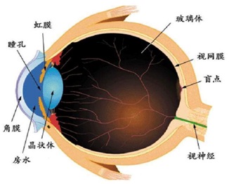 視網(wǎng)膜可能是大家最熟悉的眼部組織。它的厚度不一,一般為0.4mm,視盤邊緣最厚,約0.5mm,中央最薄,為0.1mm,由神經(jīng)細(xì)胞的多個復(fù)雜層組成,其中的視桿視錐層是感光組織。視網(wǎng)膜有視桿細(xì)胞約12000萬個,對弱光刺激敏感;另外有視錐細(xì)胞有650萬~700萬個,對強光和顏色敏感。黃斑處于人眼的光學(xué)中心區(qū),是視力軸線的投影點,人眼視線的清晰都取決于黃斑上真實圖像的形成。黃斑中央的凹陷稱為中央凹,是視力最敏銳的地方,視錐細(xì)胞大多集中在這里。