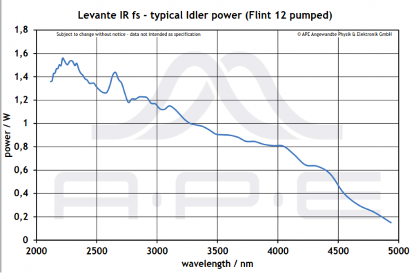 Levante IR fs OPO主要技術(shù)指標(biāo)(12W泵浦)